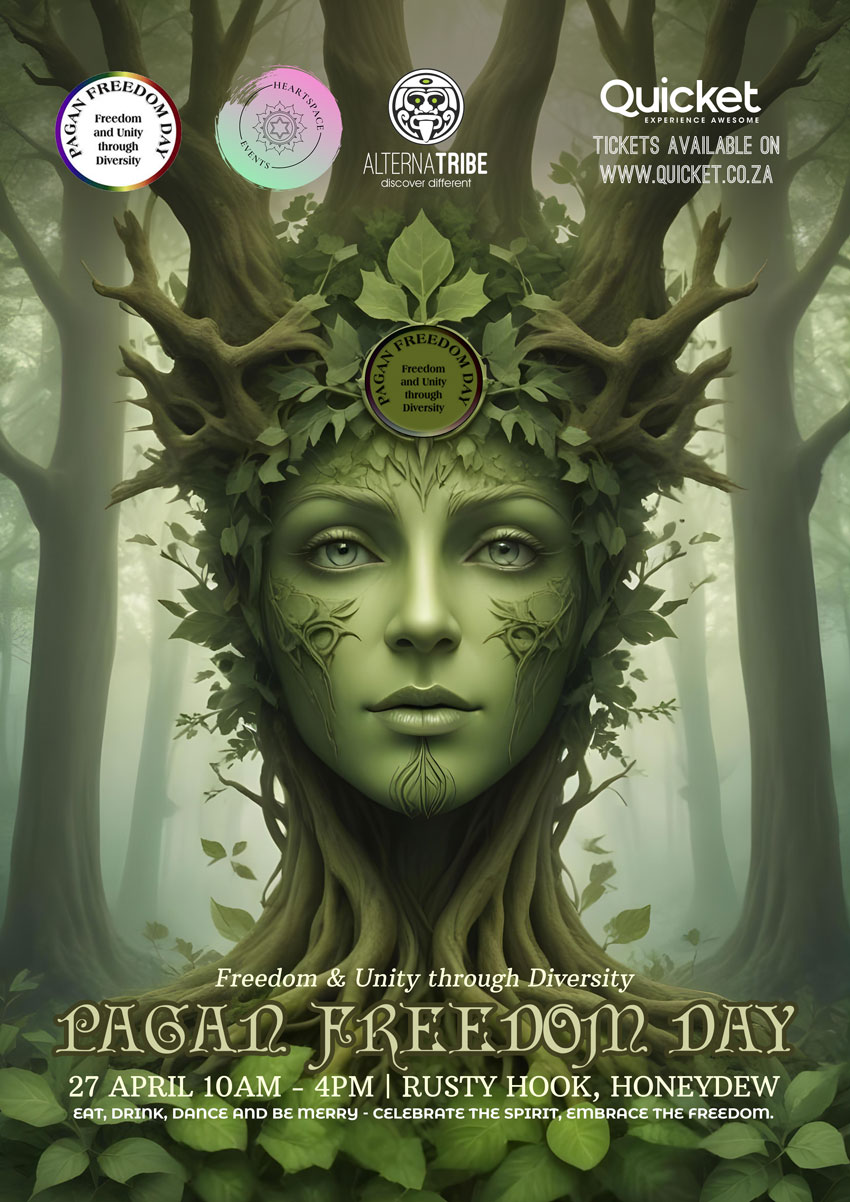 We had the honour of designing the official visual identity for Pagan Freedom Day 2025, hosted at Rusty Hook in Honeydew. The event theme, “Freedom & Unity through Diversity,” inspired a design rooted in nature, transformation, and spiritual connection.